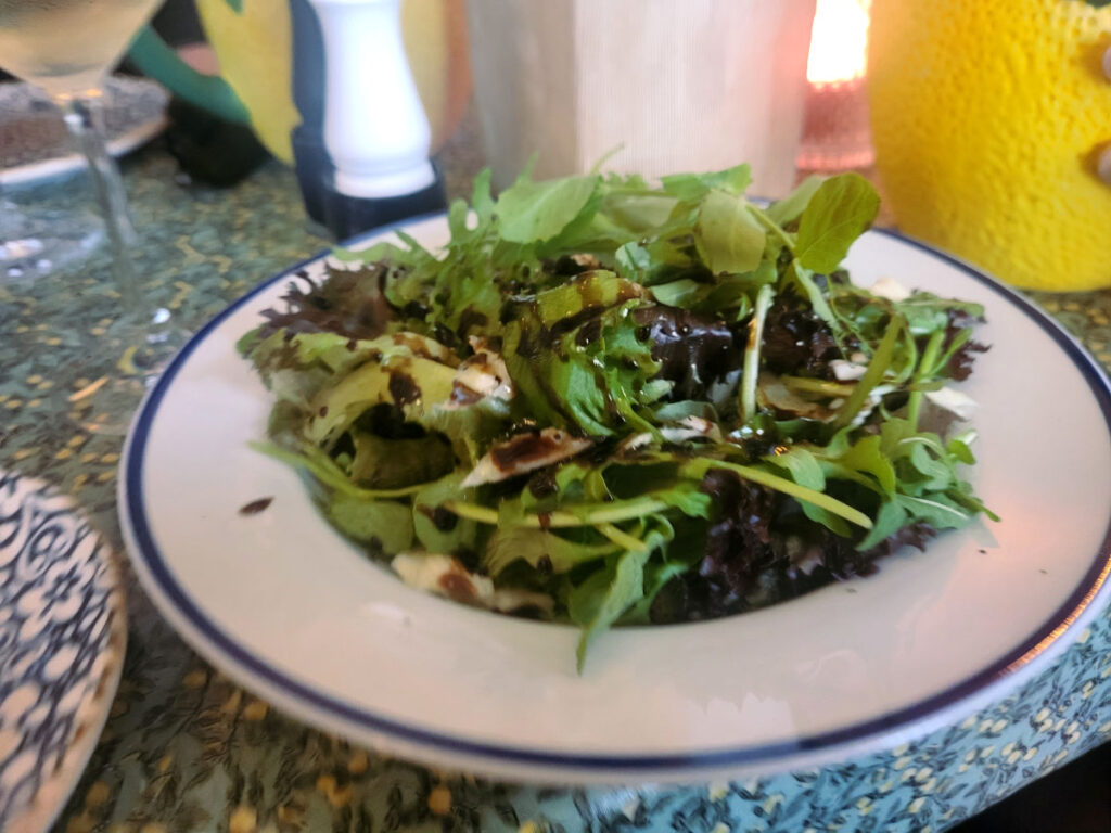 Bistro Limone er en ret uformel restaurant med et lille menukort og ditto drinkskort. Vi fik bestilt et par kander med vand samt en kande af husets hvidvin. Alle kom de i den samme type citronkander, så man skulle lige se sig for, når man ville skænke.