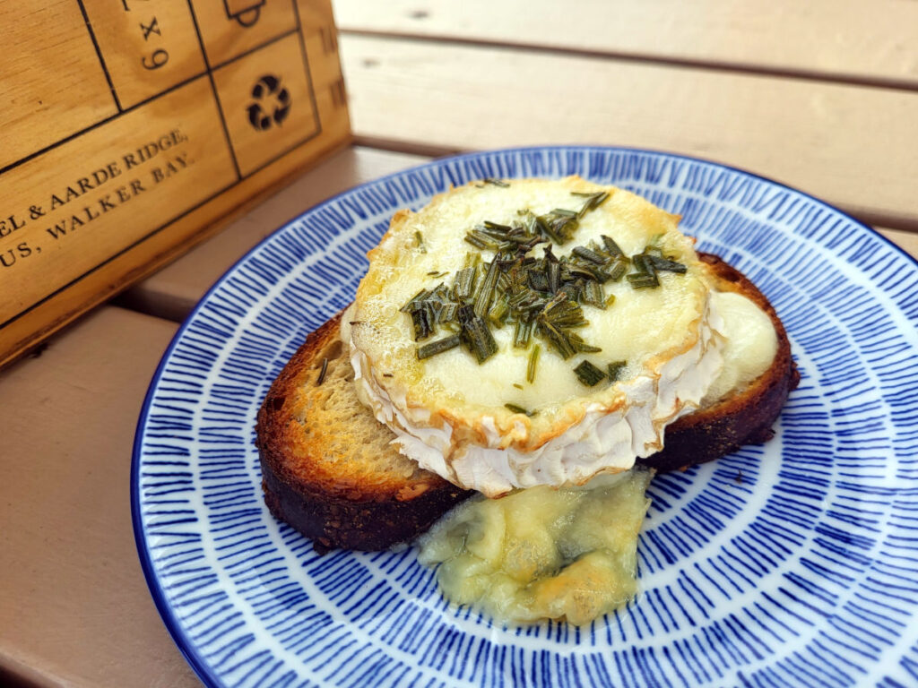 Gemalen sluttede af med et stort stykke gedekost serveret på ristet surdejsbrød og toppet med honning og krydderurter. Jeg smagte en enkelt bid, og den var god, men brødet havde lige fået en tand for meget i forhold til min smag.