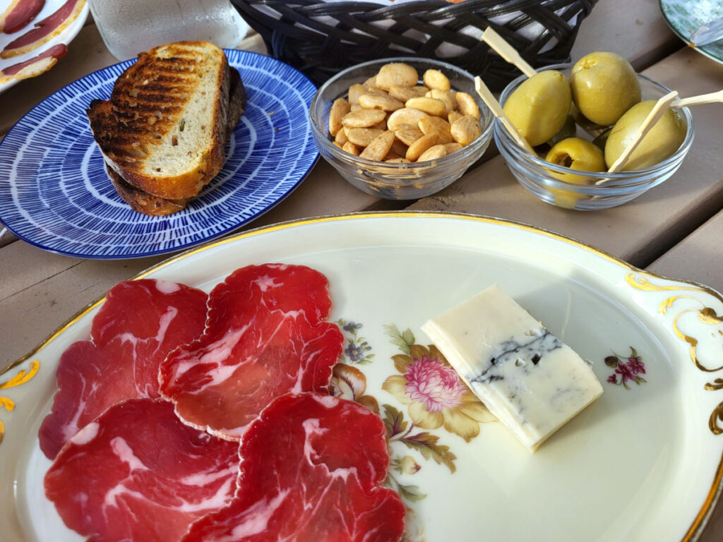 Musicon Vinbar har et fint menukort med tapasretter samt et lille udvalg af vin på glas og selvfølgelig hele flasker, man kan købe. Gemalen og jeg valgte lidt forskellige retter, vi kunne dele, samt et glas vin hver.