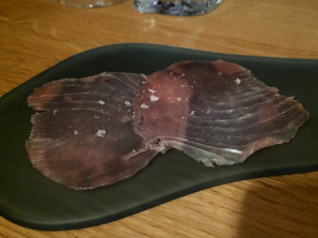 Den første ret bestod af ultratynde skiver af tun …